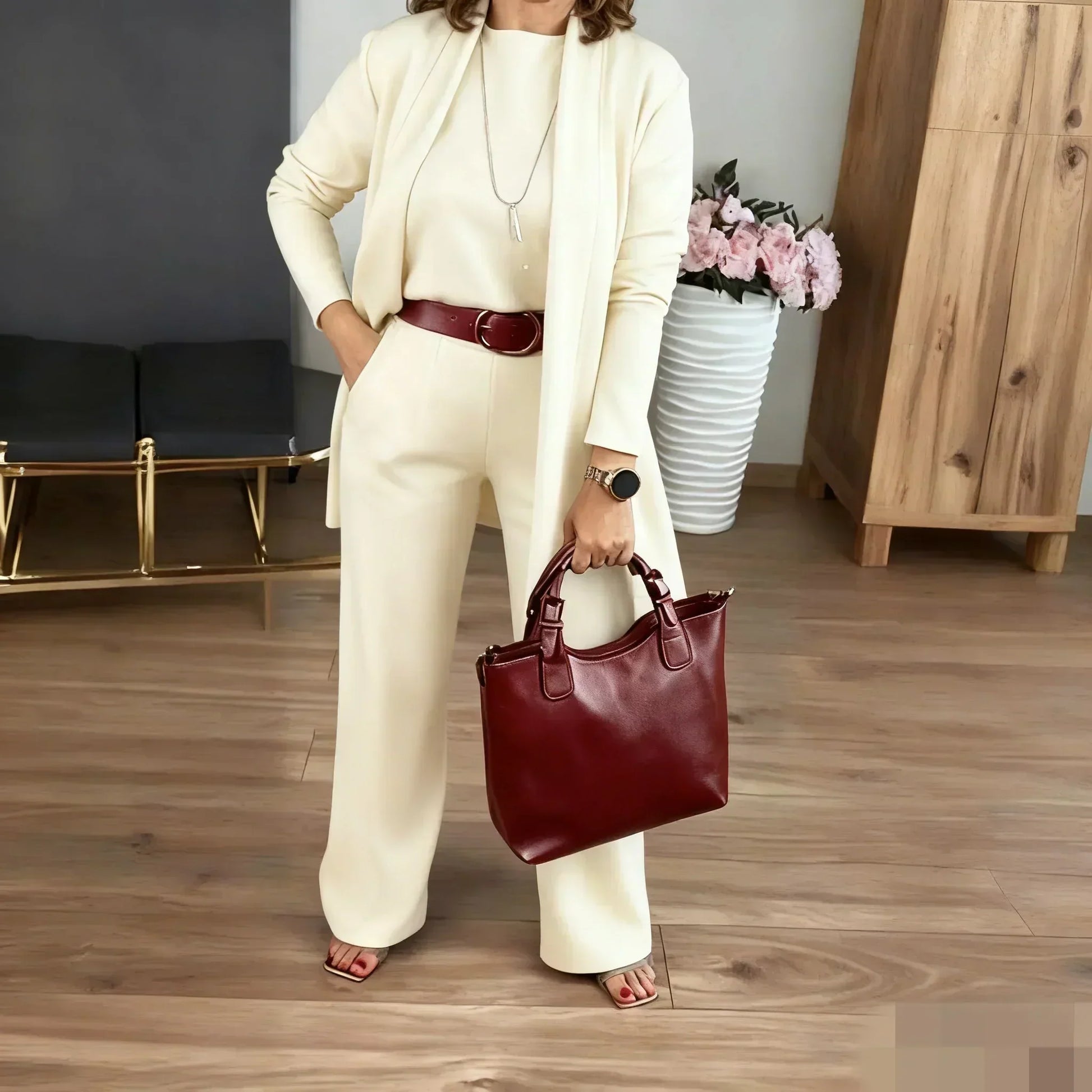 Elegant Longline Cardigan & Top & Pants 3-Pieces Set