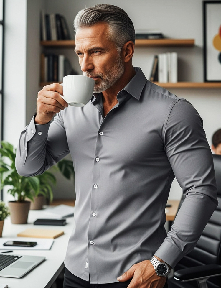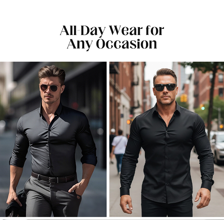 🔥Black-Friday-Mega-Angebot – 50 % Rabatt!🔥Men's Solid Color Lapel Long Sleeve Button-Down Shirts